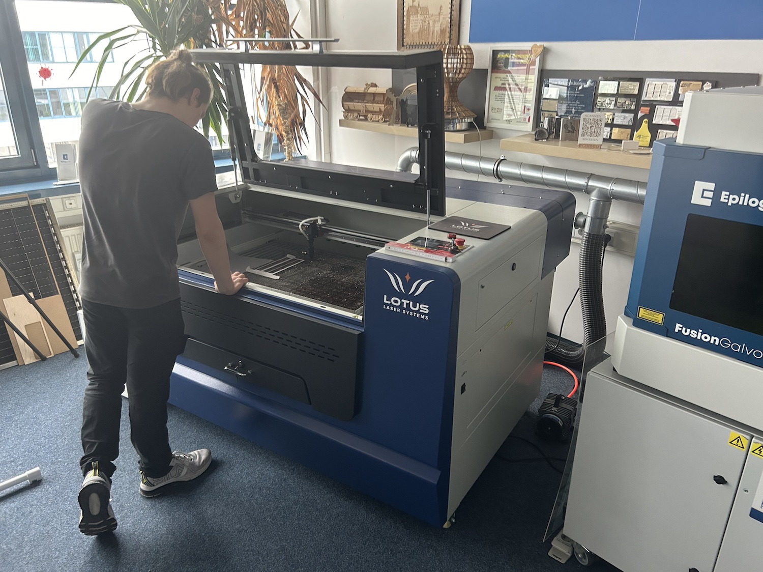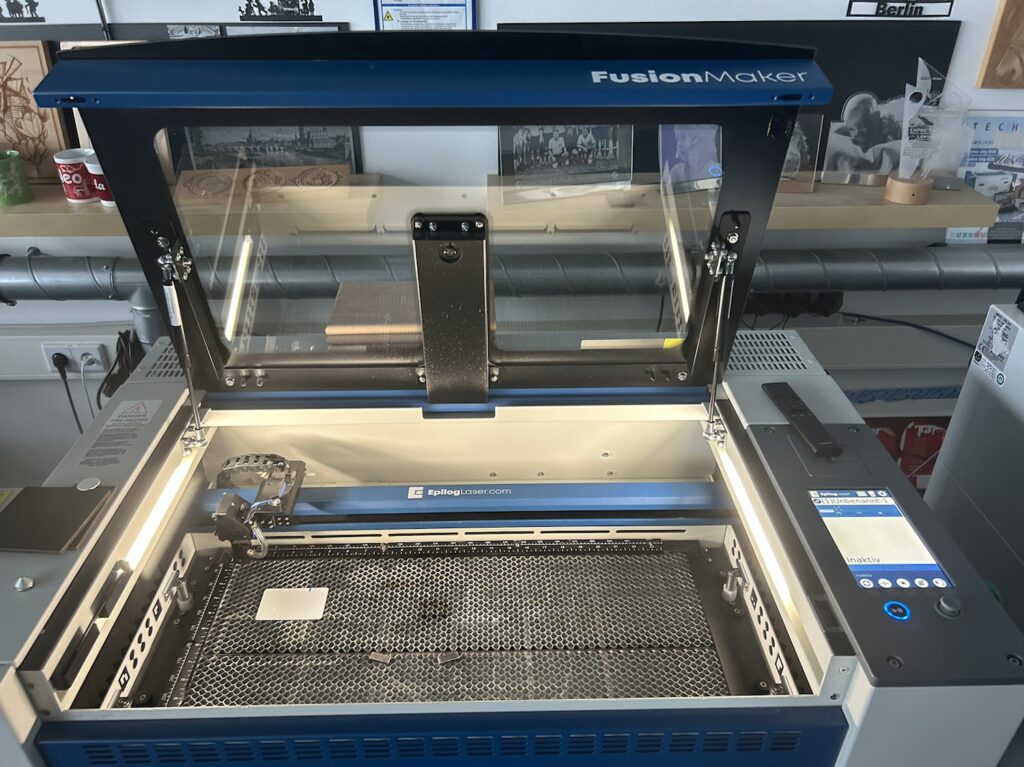 Aufgrund der Kooperation vom Verbund der Offenen Werkstätten, in dem wir auch Mitglied sind, mit der Firma cameolaser in Leipzig können wir uns einen Laser für zwei Monate ausleihen und auf Herz und Nieren Testen. Vielen Dank dafür!