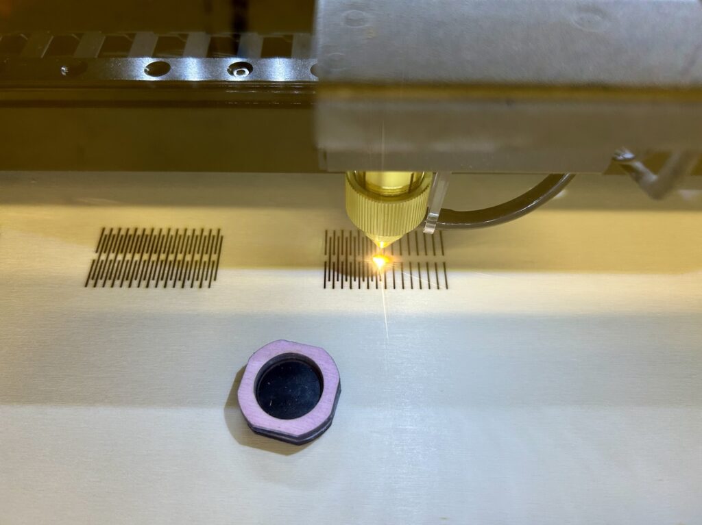 Einmal schwächer mit mehr Abstand, z.B. direkt auf dem Wabengitter, und einmal stärker mit Magnet unten, z.B. direkt auf Holz ab 3mm Dicke. Und hier noch der Höhenvergleich (passt locker unter der Laserdüse durch), und hier auch direkt danach im Einsatz.
