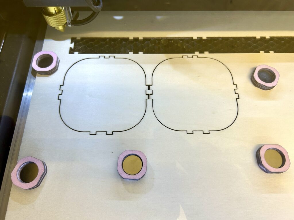 Mit ein paar Neodymmagneten mit 20mm Durchmesser und etwas 4mm Pappelholz bauen wir uns diese Magnethalter für das Werkstück im Lasercutter.