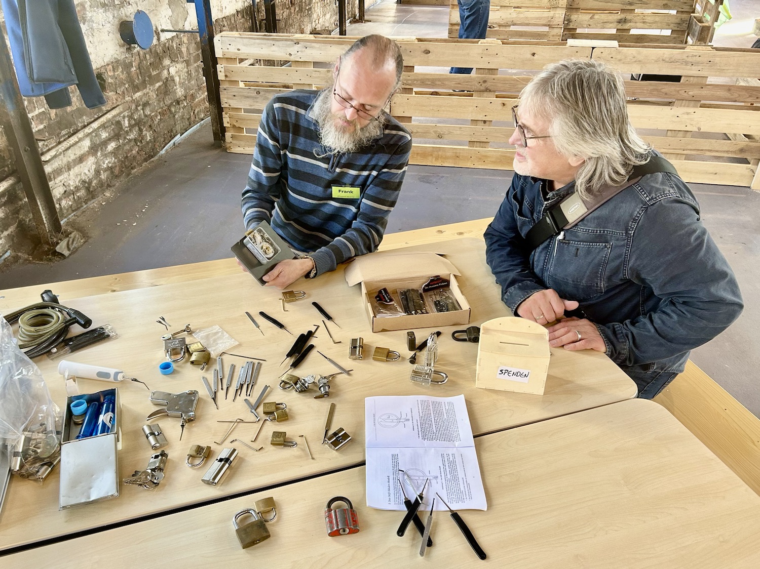 Der sowas e.V. gab den Gästen die Möglichkeit per Siebdruck eines der mitgebrachten Designs auf Textilien zu verewigen. Und schließlich hat uns Frank beim Lockpicking erneut einen Einblick in eine interessante Sportart gegeben, und auch darüber aufgeklärt wie unsicher die meisten verwendeten Schlösser doch sind.