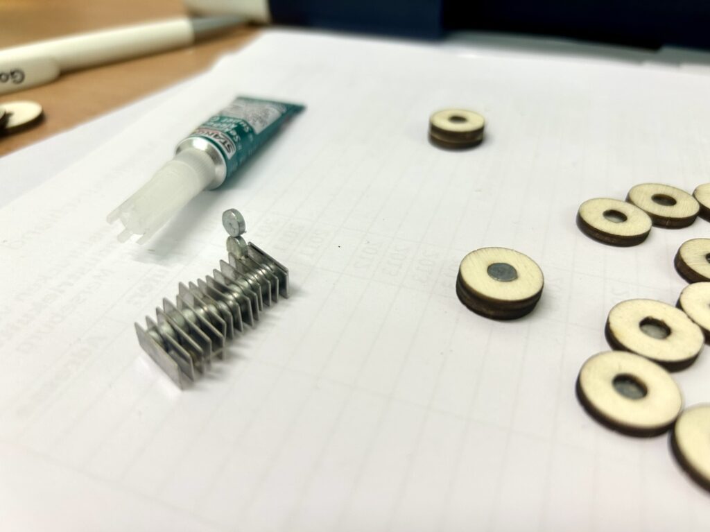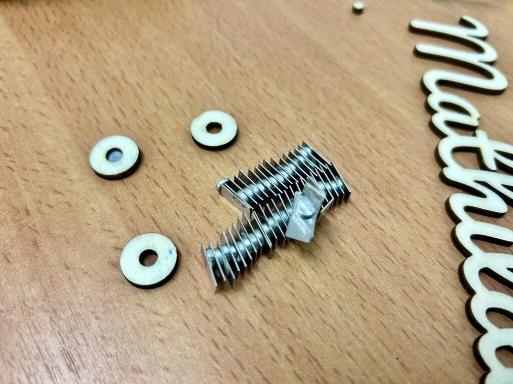 Und dann haben wir aus kleinen Magneten noch Kühlschrankmagnethalterungen gebaut, damit die Mathilda jetzt den Lasercutter zieren darf.