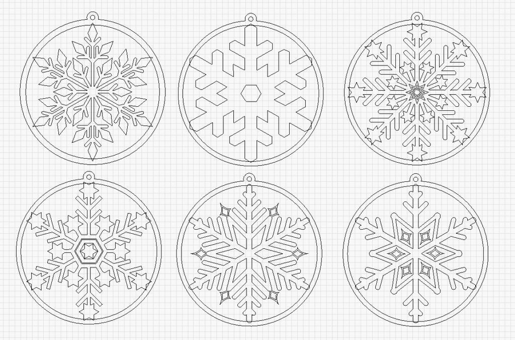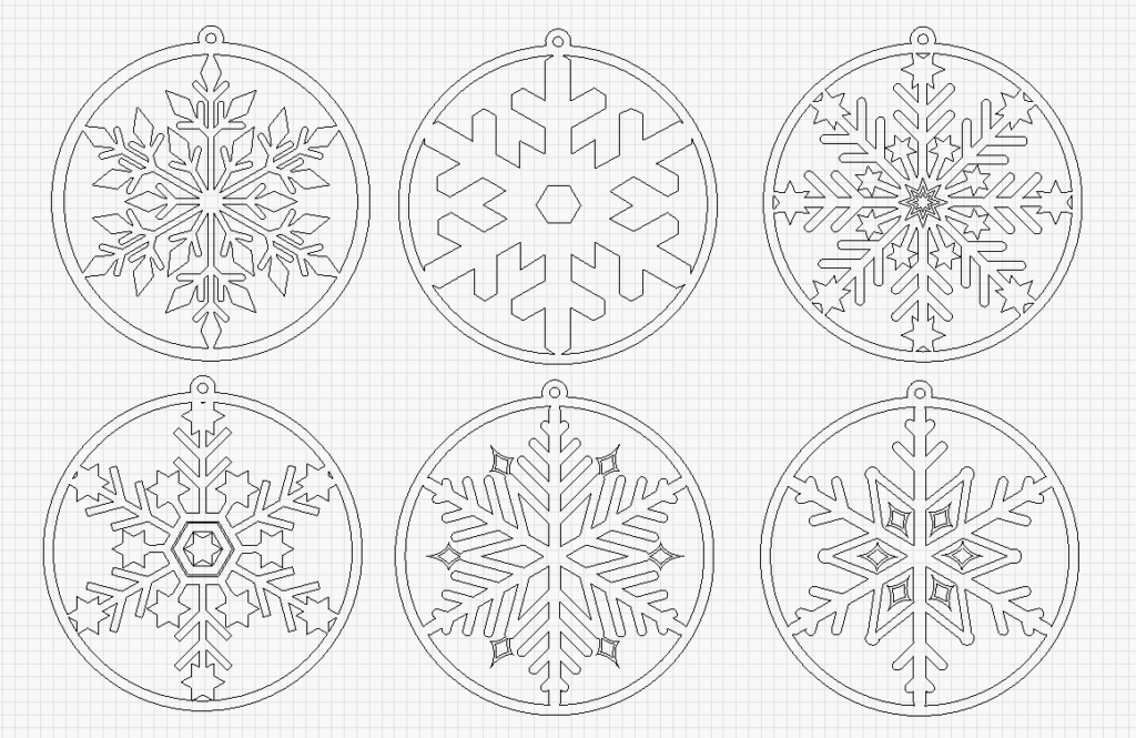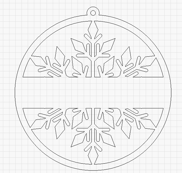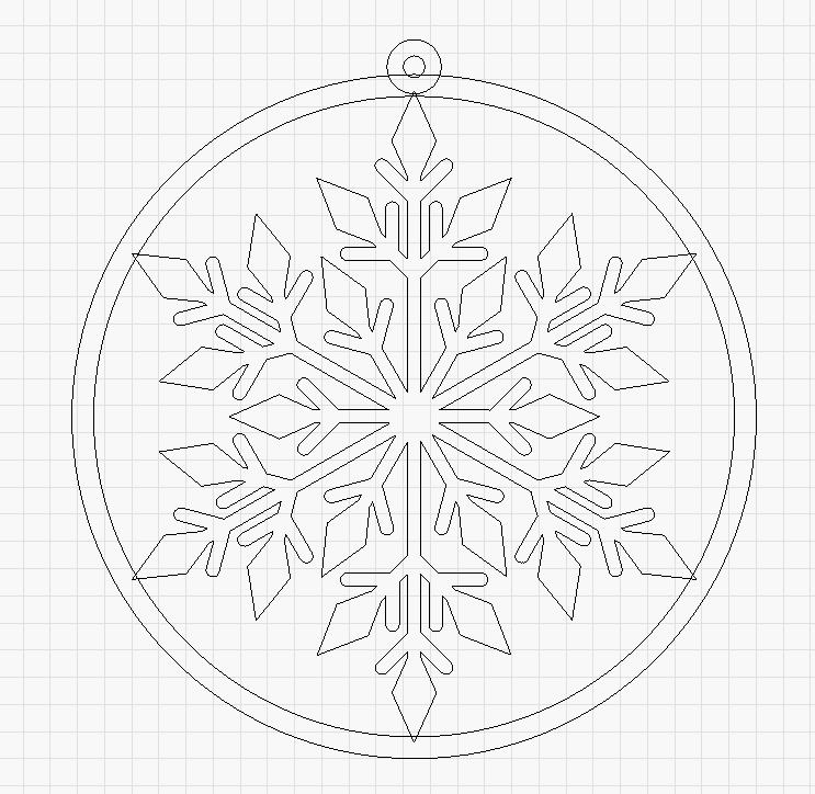 Wunderbar. Daraus können wir uns dann die schönsten Exemplare heraussuchen und bauen unseren Rahmen. Dazu erstelle ich zwei konzentrische Kreise, einen mit rund 118mm Durchmesser, und einen mit 126mm Durchmesser. Dadurch ist der Rahmen 8mm breit, und verbindet die Teile der Schneeflocke fest mit dem Rahmen.