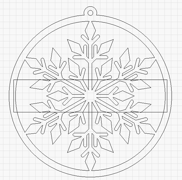 Wir erstellen ein Rechteck über die komplette Breite, und 25mm Höhe. Das zentriere ich im inneren Kreis, und schneiden wir dann mit der booleschen Operation "Subtrahieren" mit dem inneren Rahmen samt Schneeflocke. Darauf kommt dann später der Name. Ergebnis: