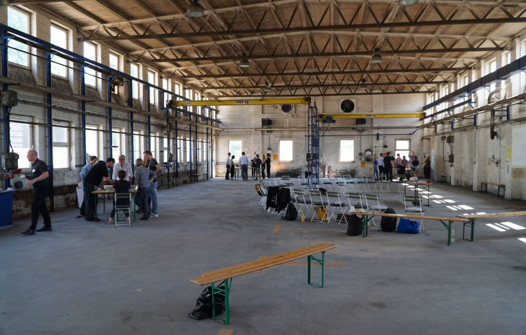 Auf dem Gelände entstehen gerade unter anderem eine 400m² große Mehrzweckhalle für Veranstaltungen, eine Offene Werkstatt/Makerspace, eine Materialinitiative für gebrauchte Materialien, eine Experimentierküche sowie ein CoWorking-Space an der Saale.